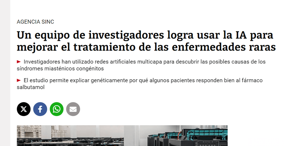 Artículos Interesantes https://www.infolibre.es/ciencia/investigadores-espanoles-inteligencia-artificial-mejorar-tratamientos-enfermedades-raras_1_1731449.html https://elpais.com/salud-y-bienestar/2024-02-26/carmen-la-nina-que-tiene-la-llave-para-el-tratamiento-de-enfermedades-de-origen-genetico.html