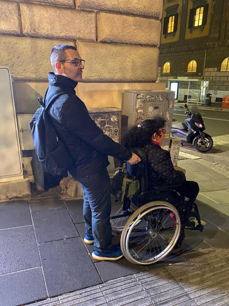 Una vez en Roma, decidimos que lo más rápido y cómodo era el tren Leonardo Express por 42 € las 4 personas. Nosotros lo cogimos pensando que un Uber sería mucho más caro, pero no es así y los coches si eliges con equipaje son grandes y caben las maletas y la silla de ruedas (siempre que sea plegable). Además, el tren era rápido, pero no cómodo; no funcionaban las rampas para subir la silla y podía tocarte ir de pie.